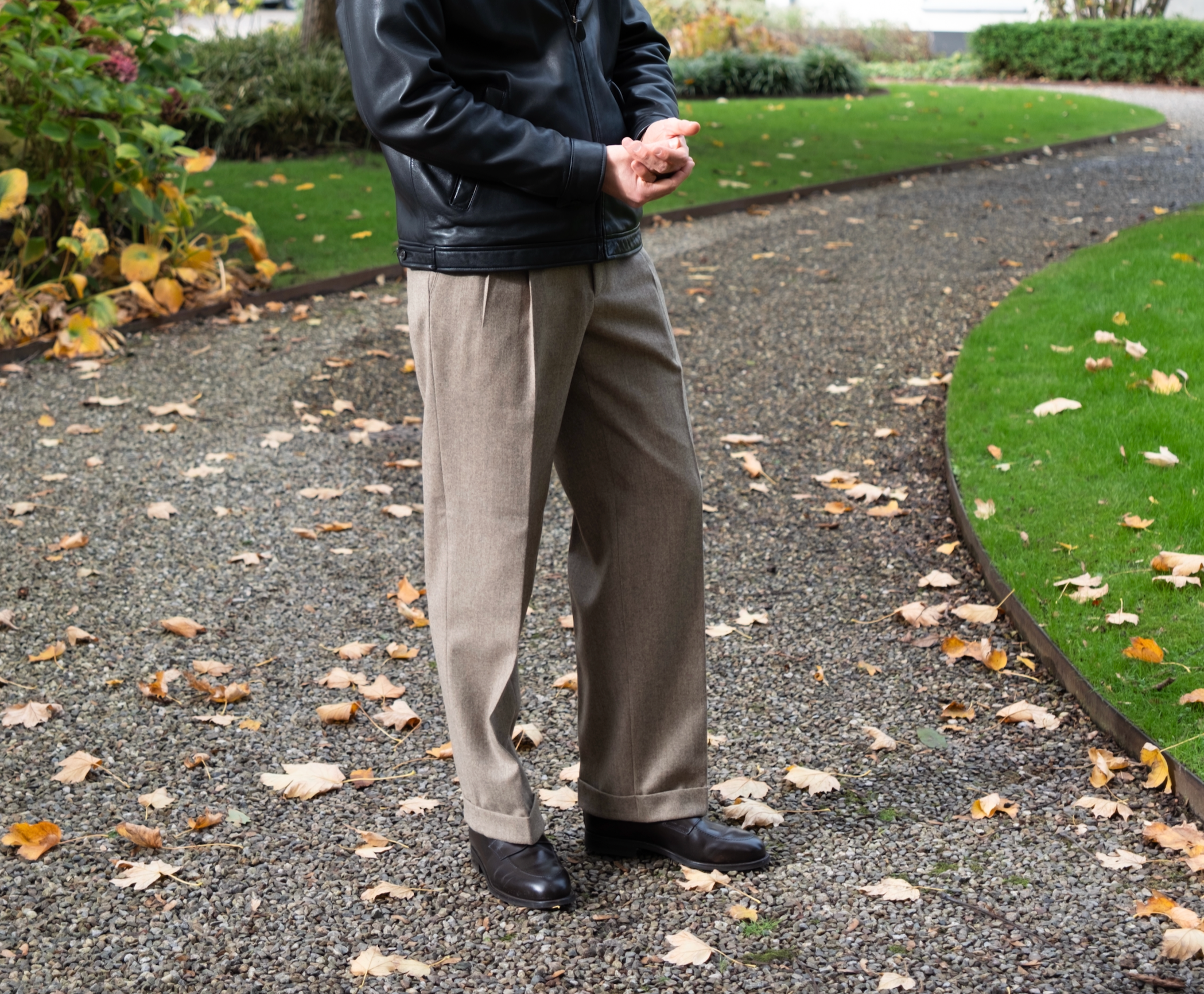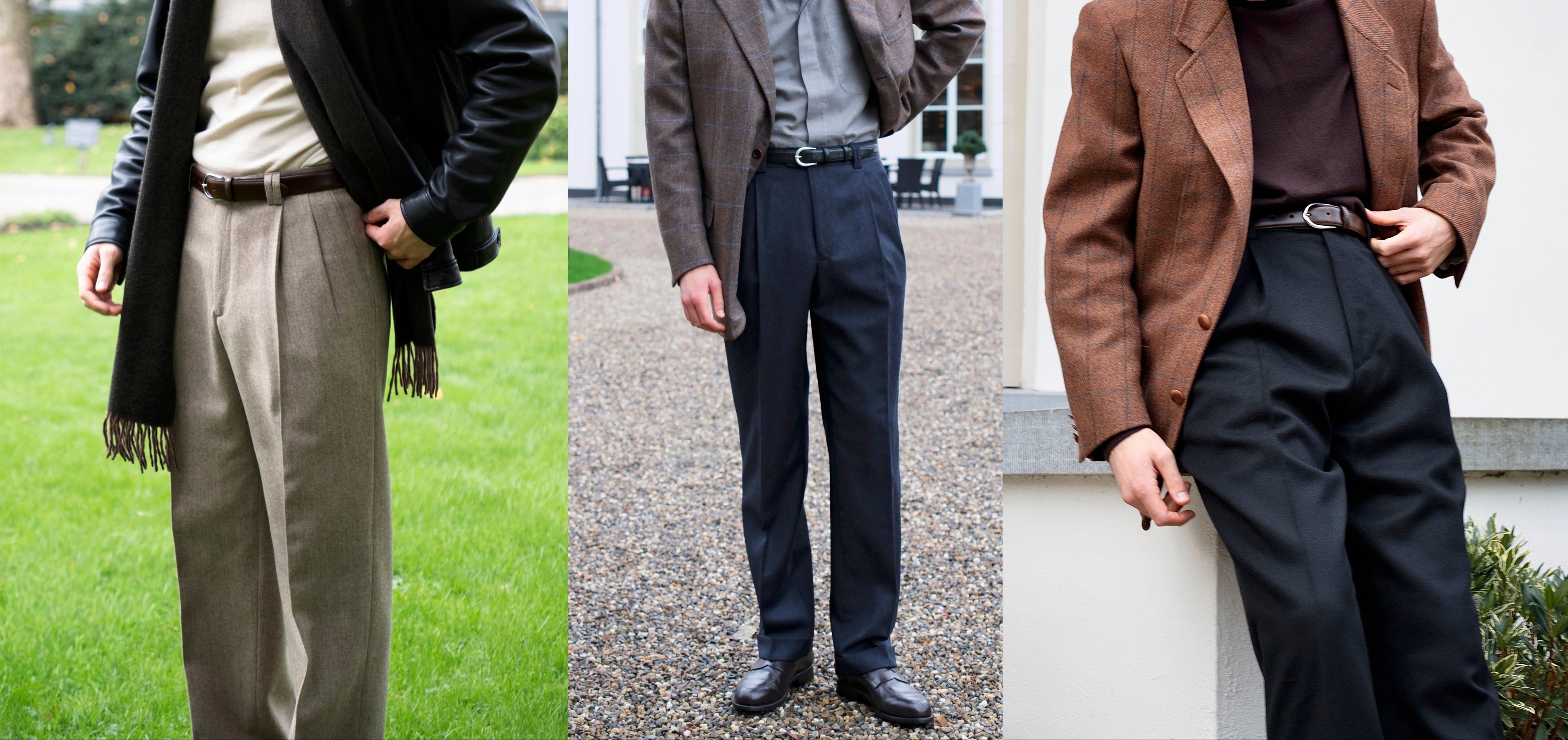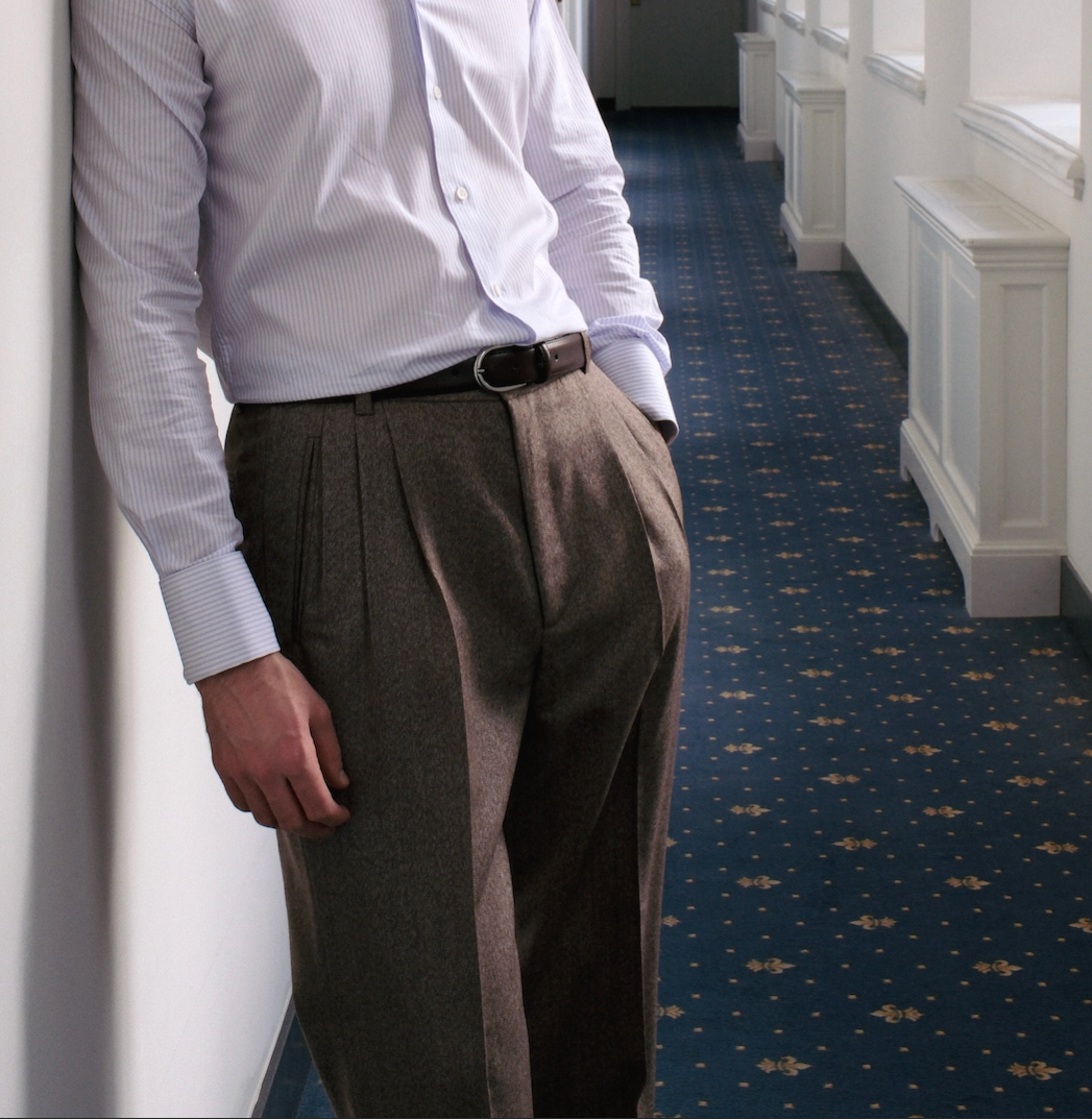 Our new-old-stock men's trousers are mostly from the early 2000s, when the cut of trousers was generally a bit fuller than many mainstream brands today. This gives the trousers drape and makes it comfortable to wear. It's a timeless and elegant look that looks effortless.